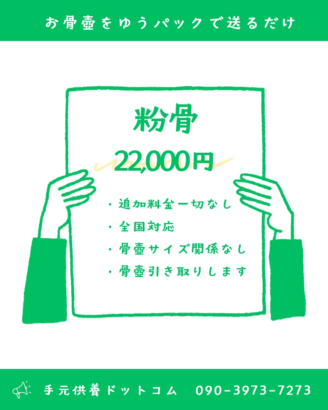 骨壺のサイズに関わらず、20,000円(税抜)で丁寧に粉骨させていただきます